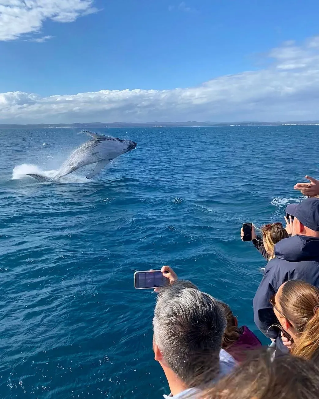 - Close-up interactions: breaching, spy-hopping, tail-slapping, and rolling around for fun.