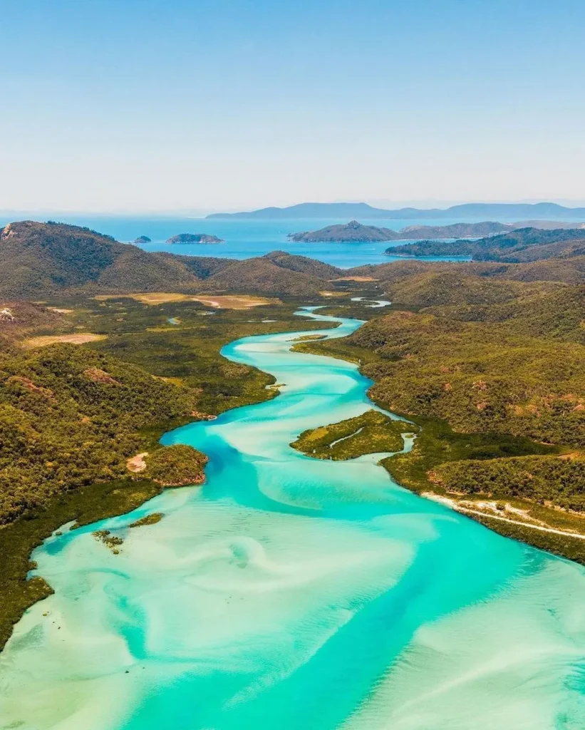Hill Inlet is a great place to visit the Whitsundays and the Great Barrier Reef. The hue, tide, and light all work together. At the Whitsunday Airport departure point, people check in for a short safety briefing and tour before the flight. Every day, the trip leaves from big hotels in the region. Every passenger is guaranteed a window seat so they can view the little things that make Whitehaven Beach special, the swirling sands of Hill Inlet, and the beautiful coral formations surrounding the faraway sand cays.