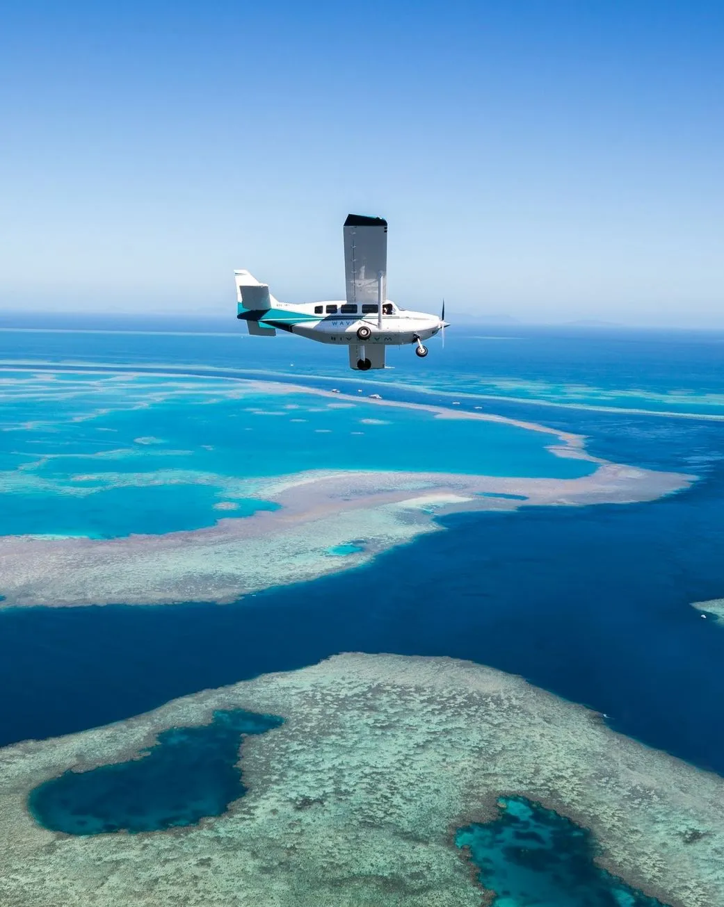 - Fly over the Great Barrier Reef, Heart Reef, and Whitehaven Beach.